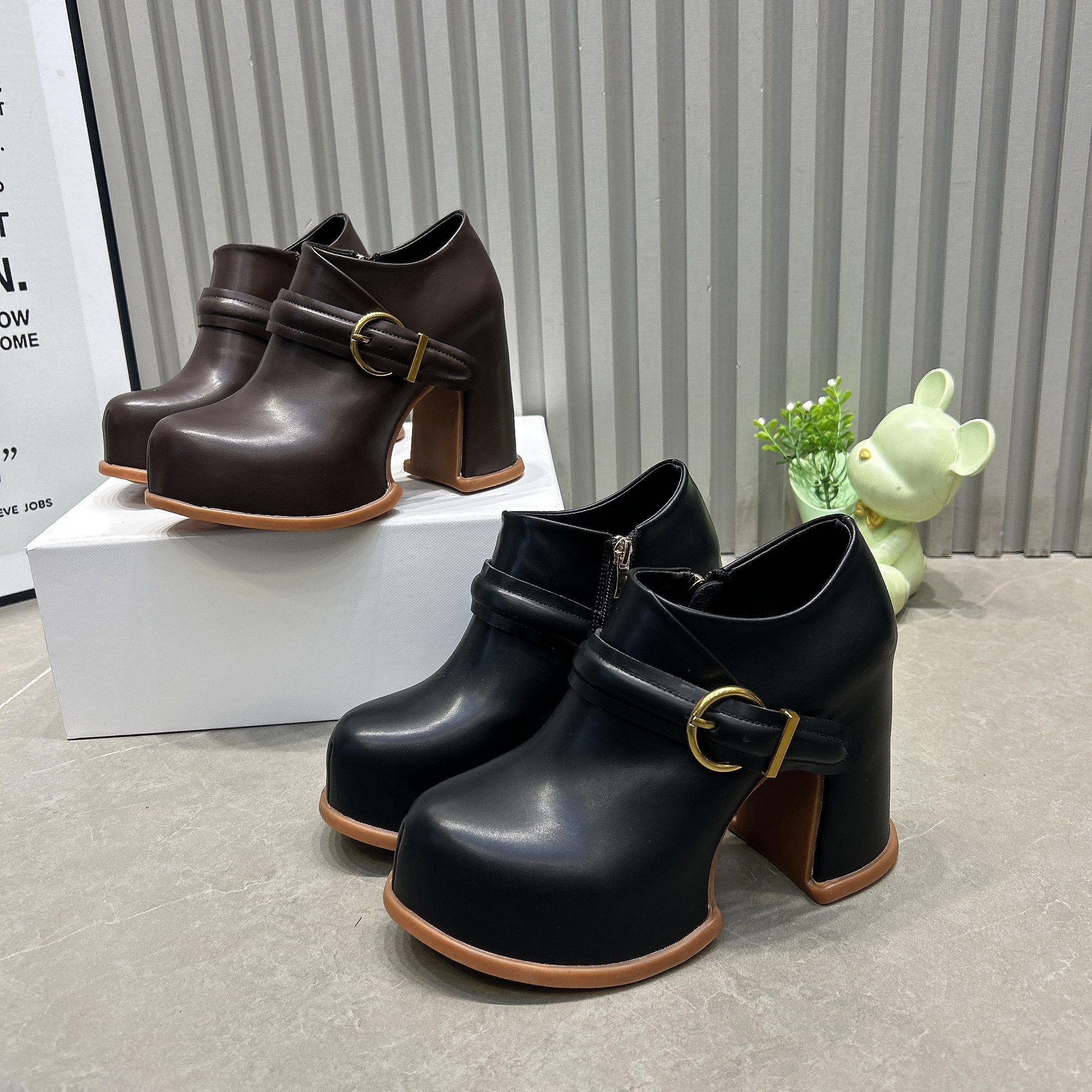 - 粗跟小皮鞋