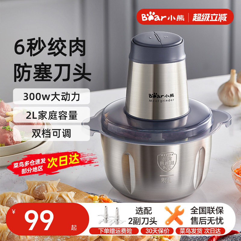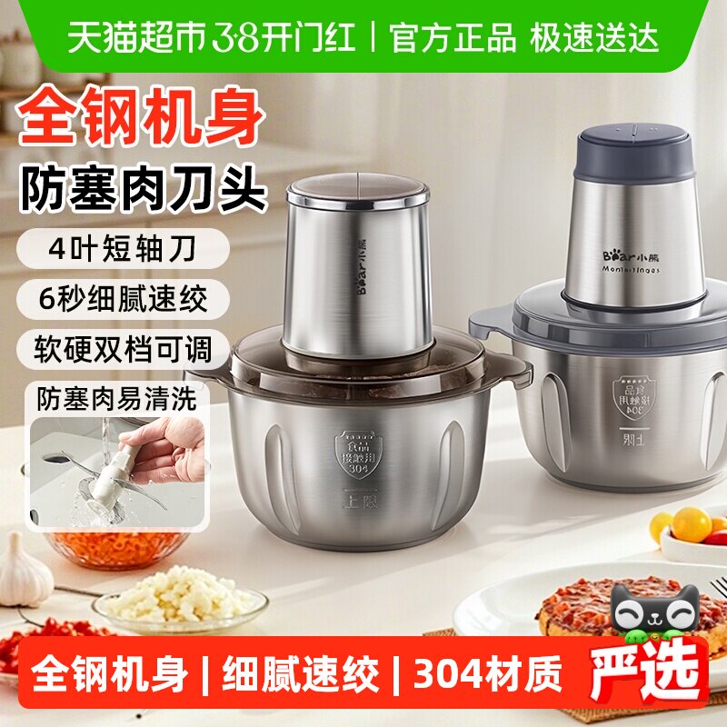 小熊绞肉机家用电动小型全自动多功能不锈钢大容量搅拌机官方正品
