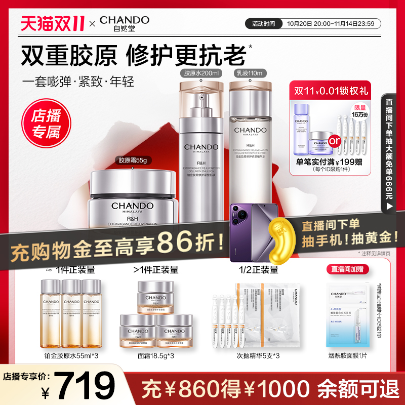 【双11店播专属】自然堂铂金胶原水乳精华面霜套装修护紧致抗老