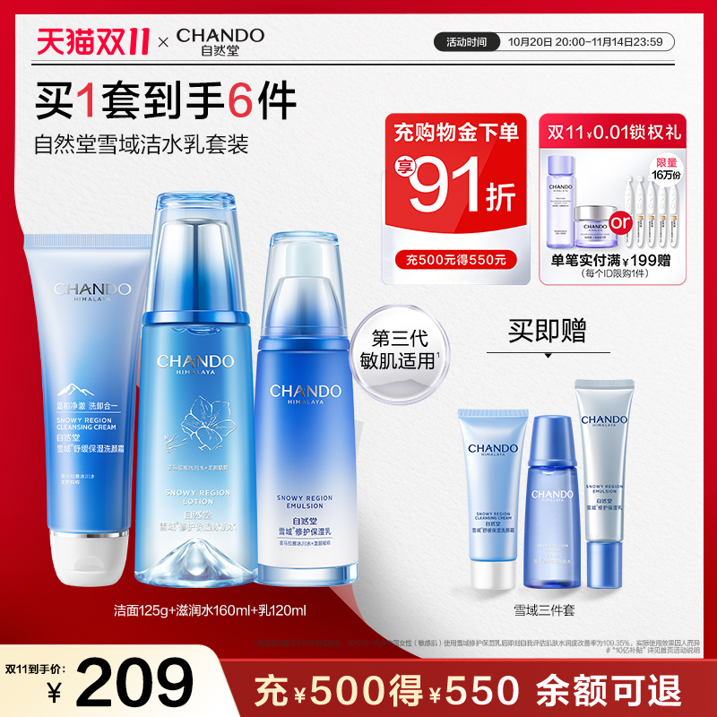 自然堂雪域水乳套装补水保湿舒缓修护化妆品护肤品官方旗舰店正品