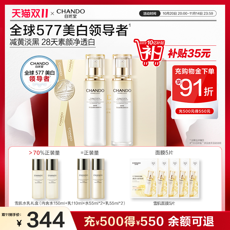 【28天全脸净透白】自然堂577美白雪肌水乳套装改善暗沉减黄淡黑