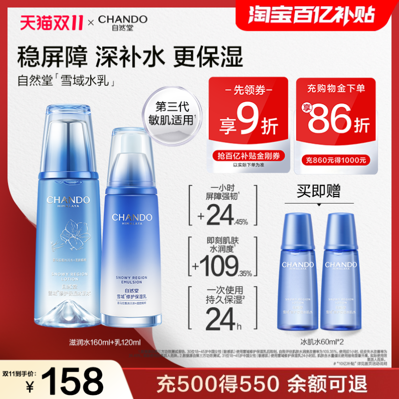 自然堂水乳套装雪域补水保湿舒缓修护化妆品护肤品官方旗舰店正品