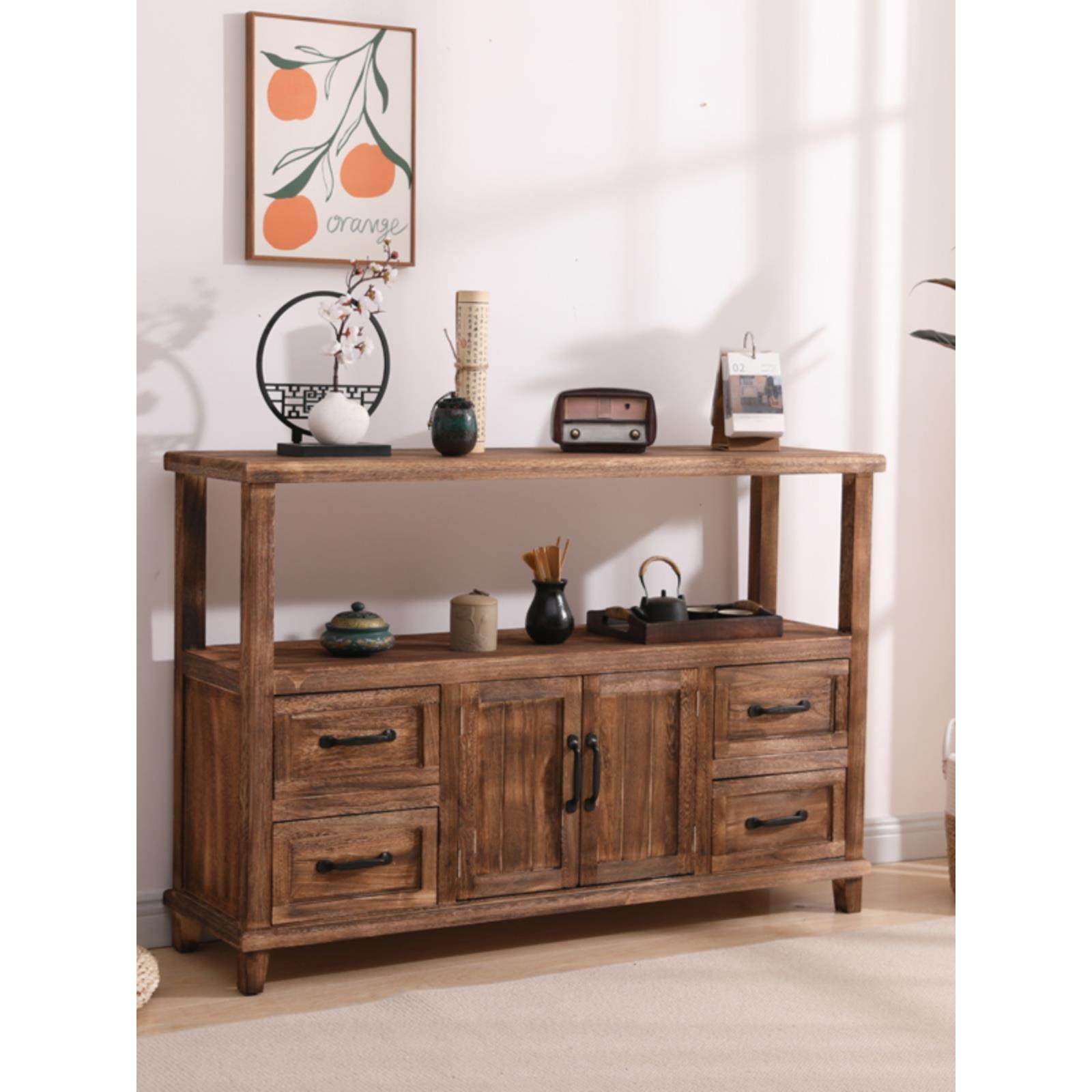 直营鞋柜中古中式风实木橡木餐边柜储物柜客厅靠墙高柜杂物柜厨柜