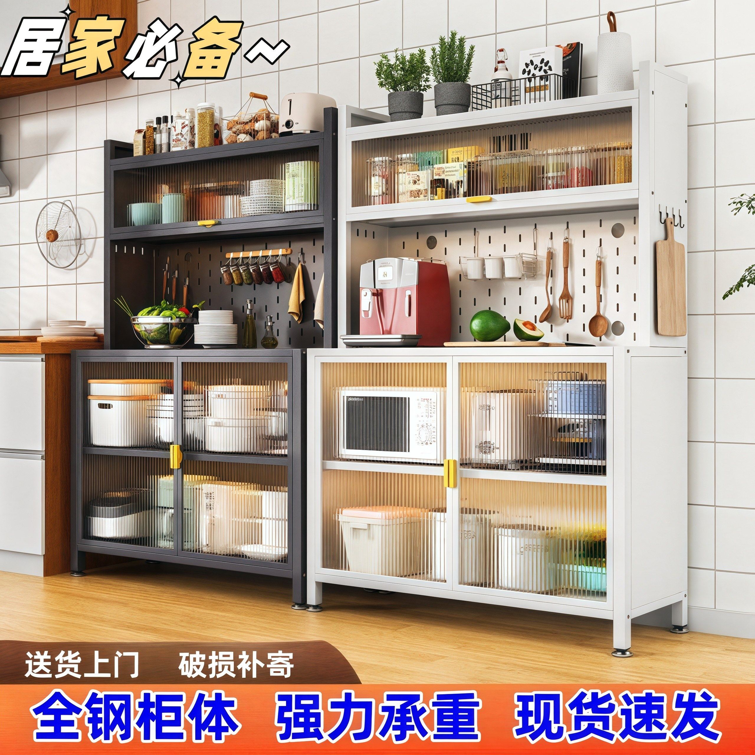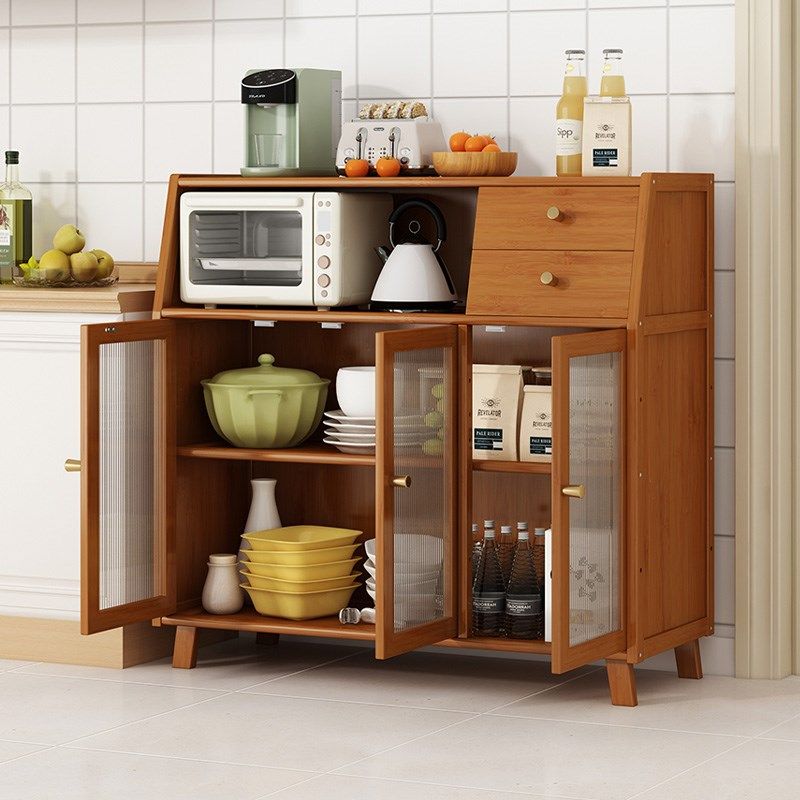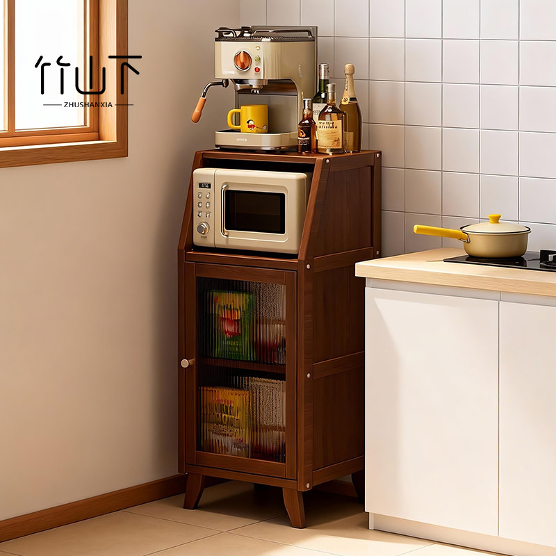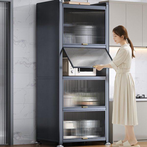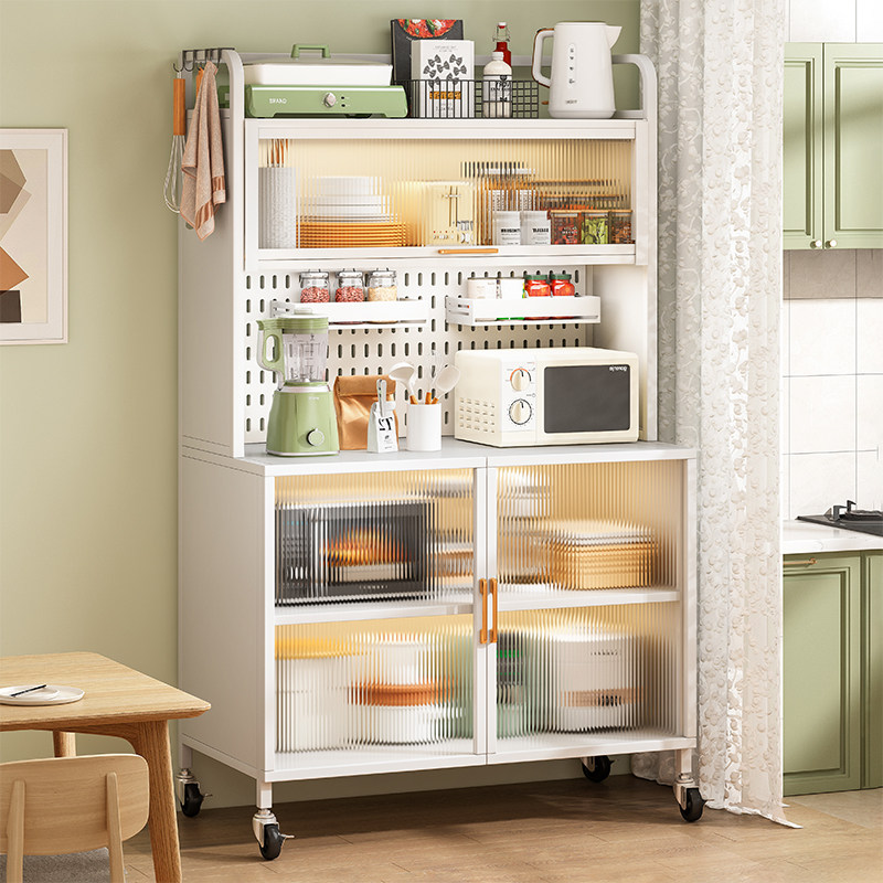 厨房置物架落地多层置物柜带门微波炉电器多功能橱柜餐边柜储物柜