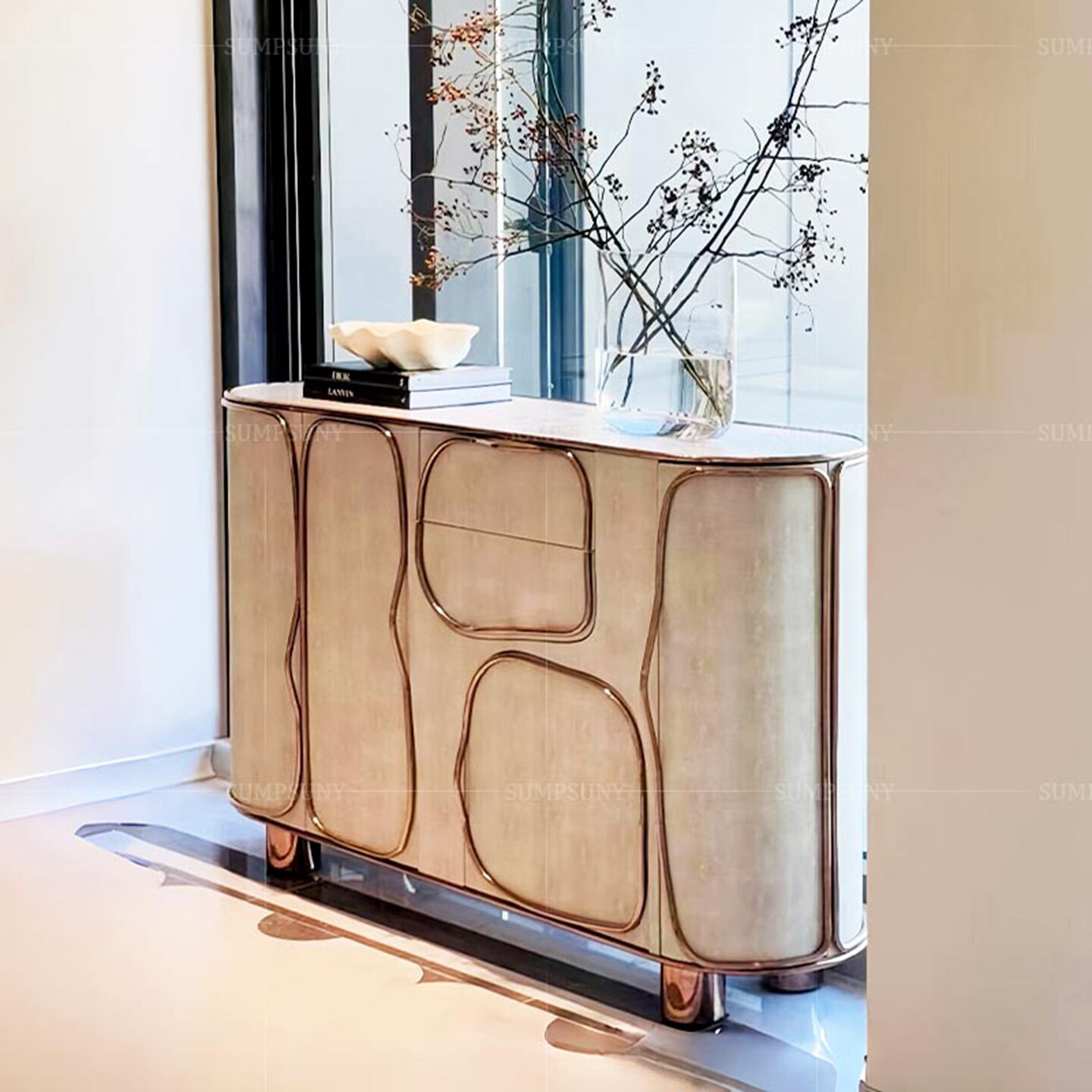 意式轻奢高端珍珠鱼皮餐边柜储物柜别墅高级感创意现代艺术玄关柜