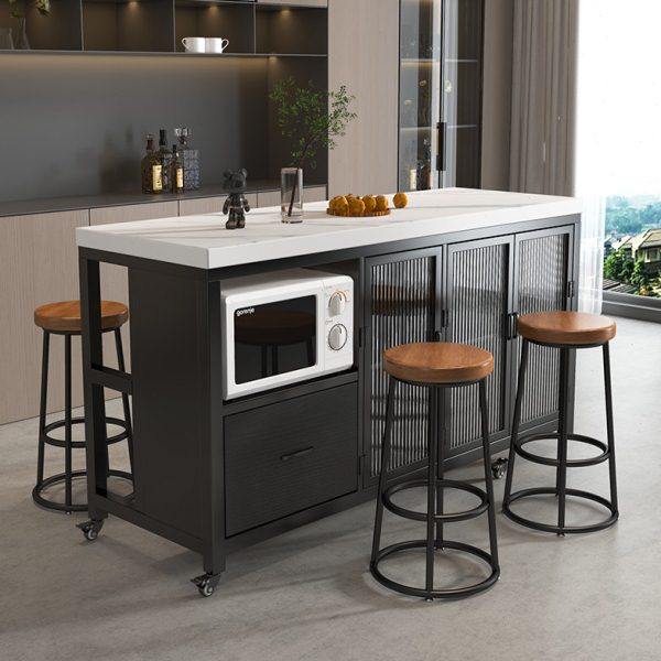 中古风可移动单独岛台柜小户型岩板餐桌一体极窄餐边柜储物柜定制