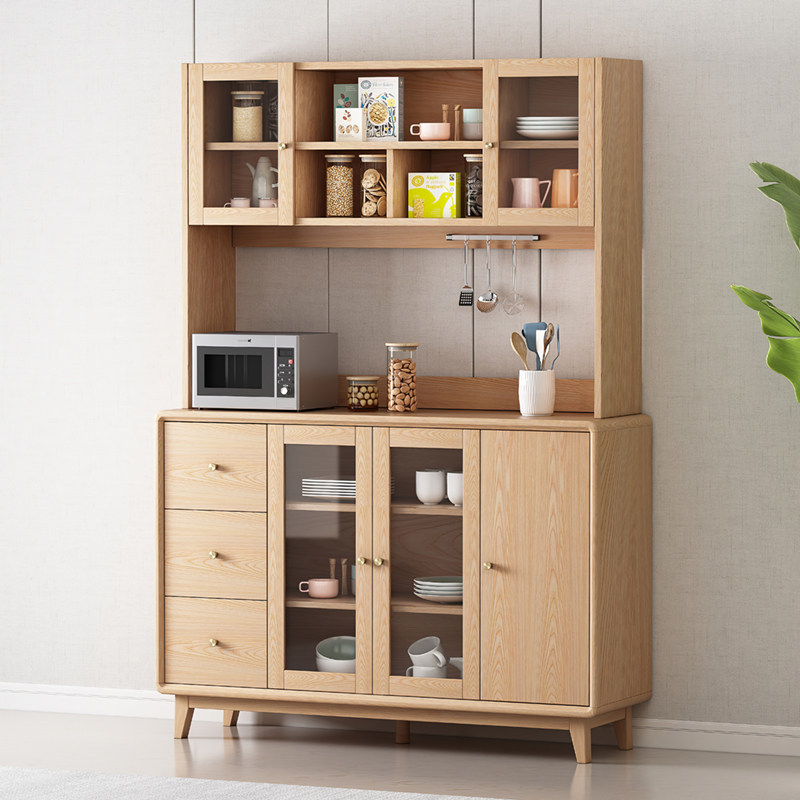 森趣美式实木餐边柜储物柜碗柜茶水柜酒柜厨房白蜡木柜子收纳家具