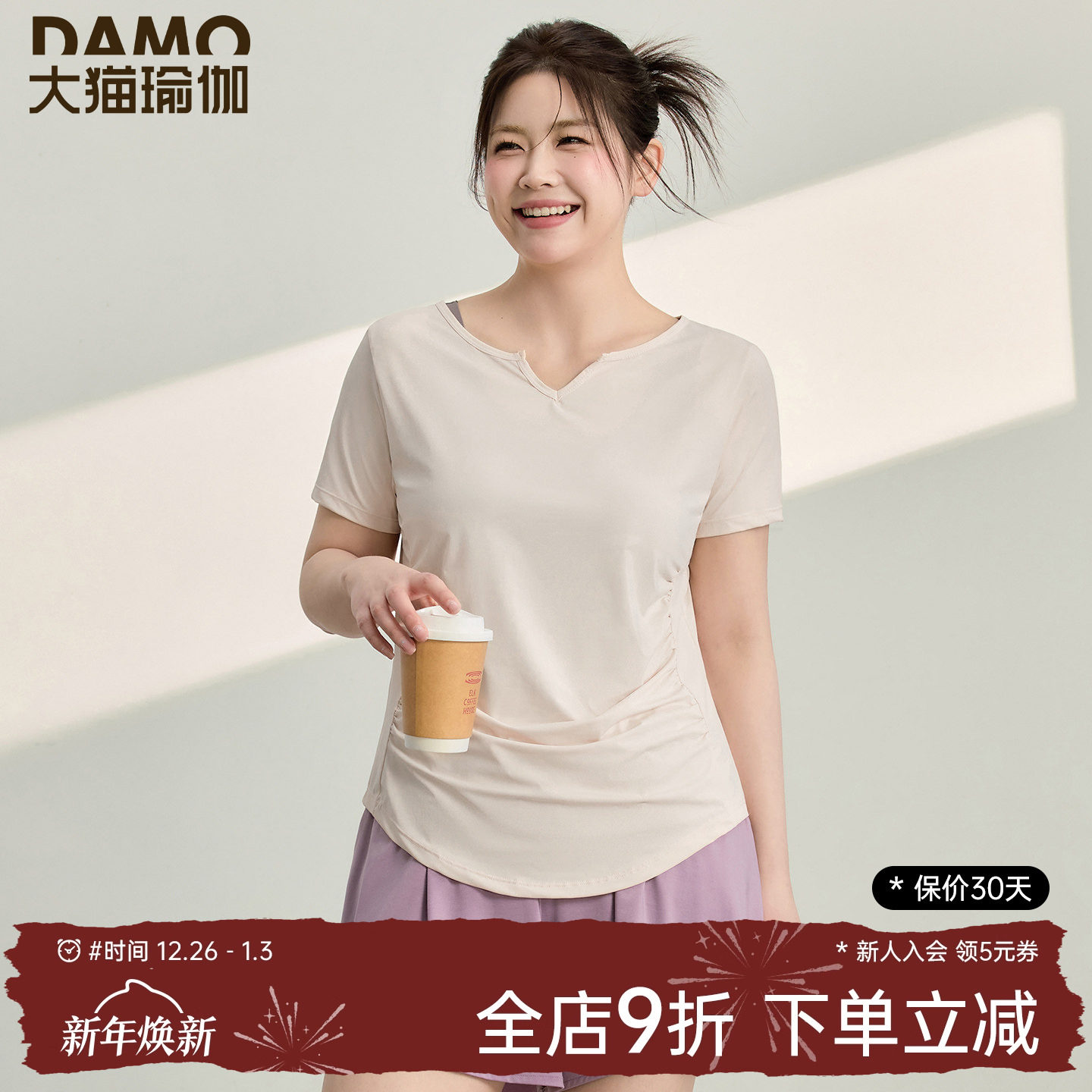 云端贝壳含胸垫瑜伽服女夏季运动健身短袖修身显瘦跑步休闲短上衣