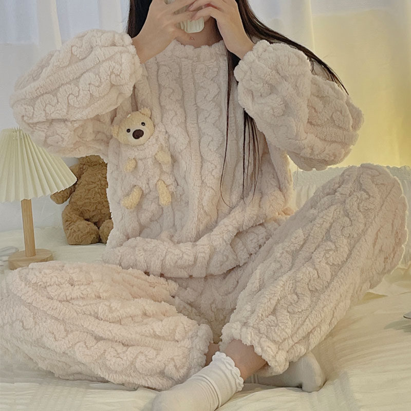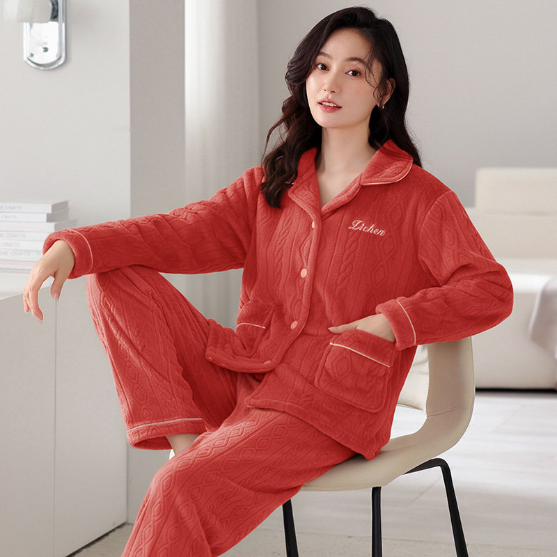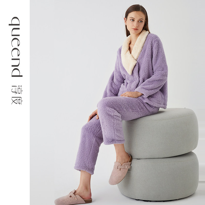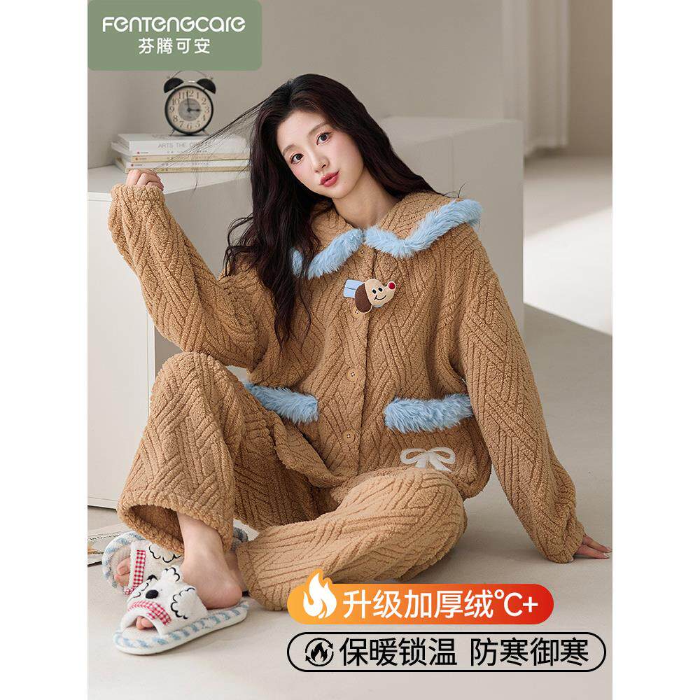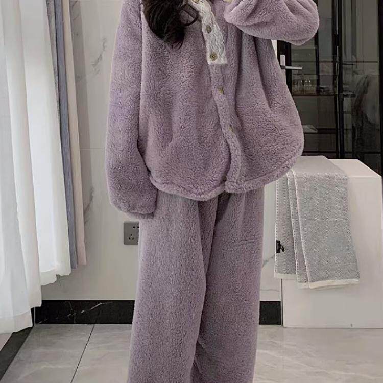 - 珊瑚绒睡衣女士冬天加厚家居服套装