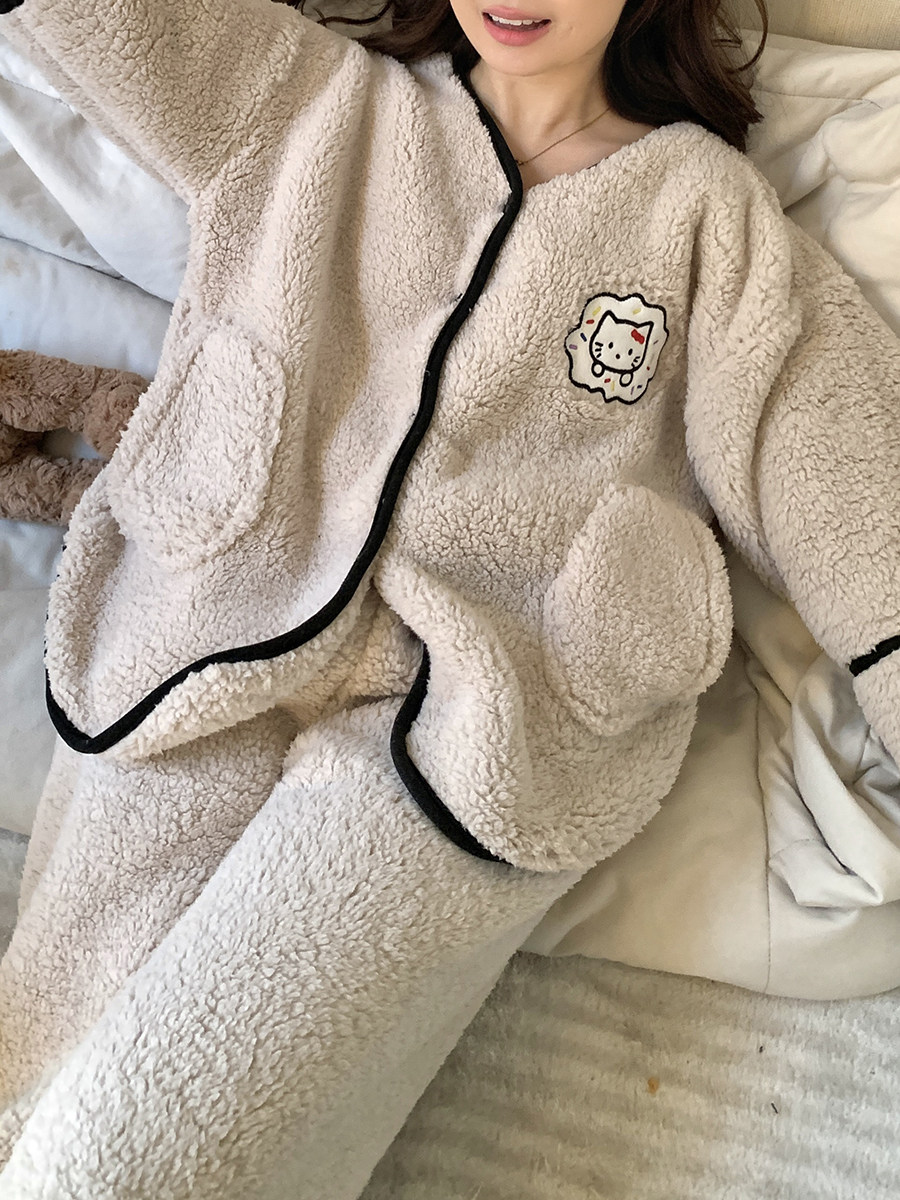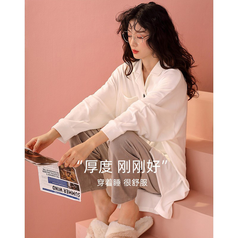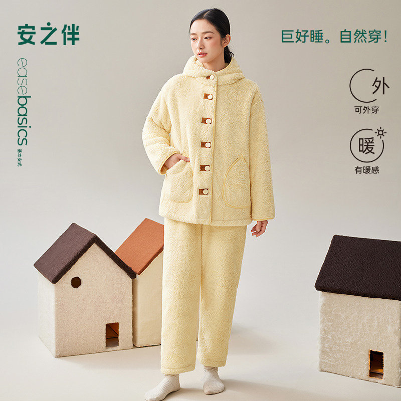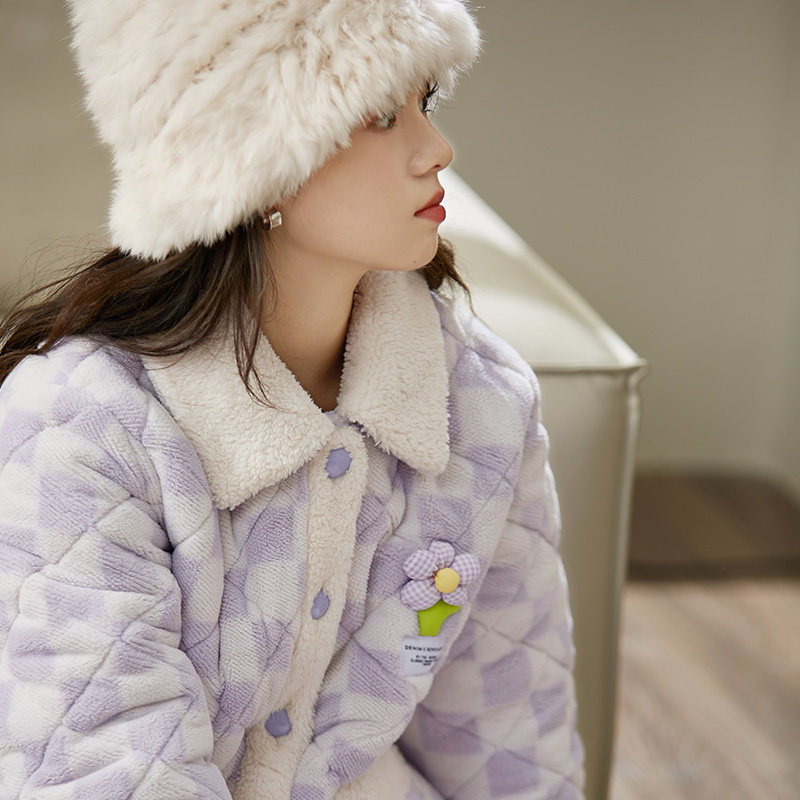 - 珊瑚绒睡衣女士冬天加厚家居服套装