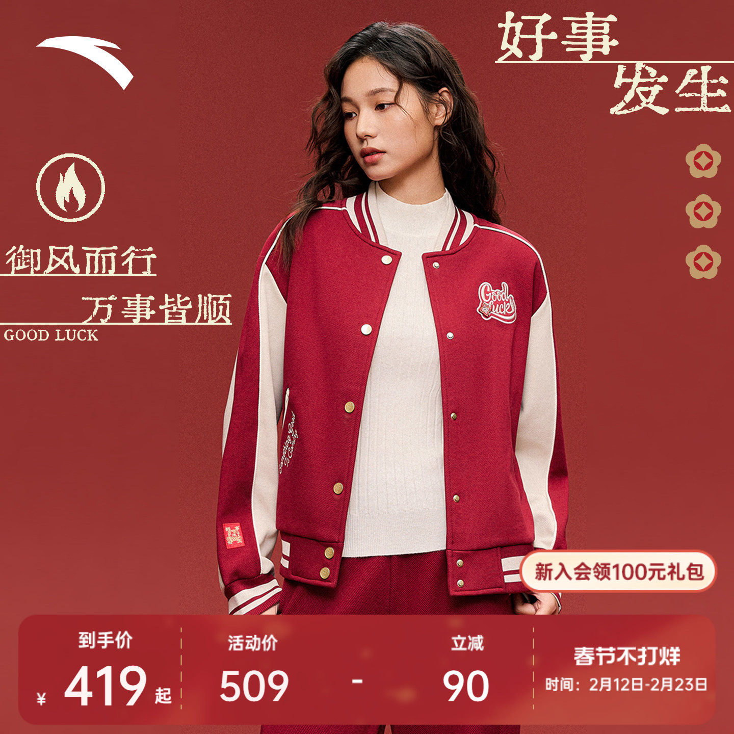 安踏好事发生丨马年新年鸿运外套棒球服女新款夹克上衣162618703