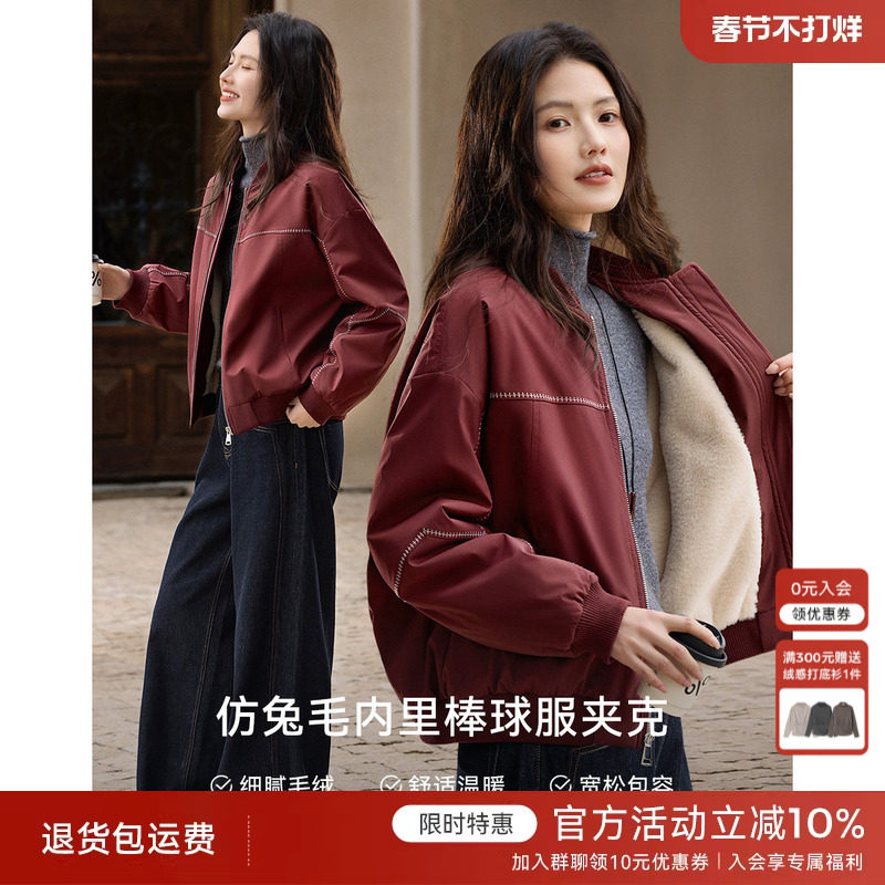 XWI欣未都市通勤内里仿兔毛棒球服外套女春季撞色线小众设计上衣