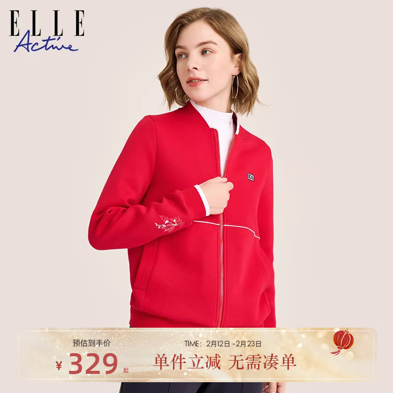 ELLE Active本命年红色棒球服外套气质户外立领夹克休闲运动上衣