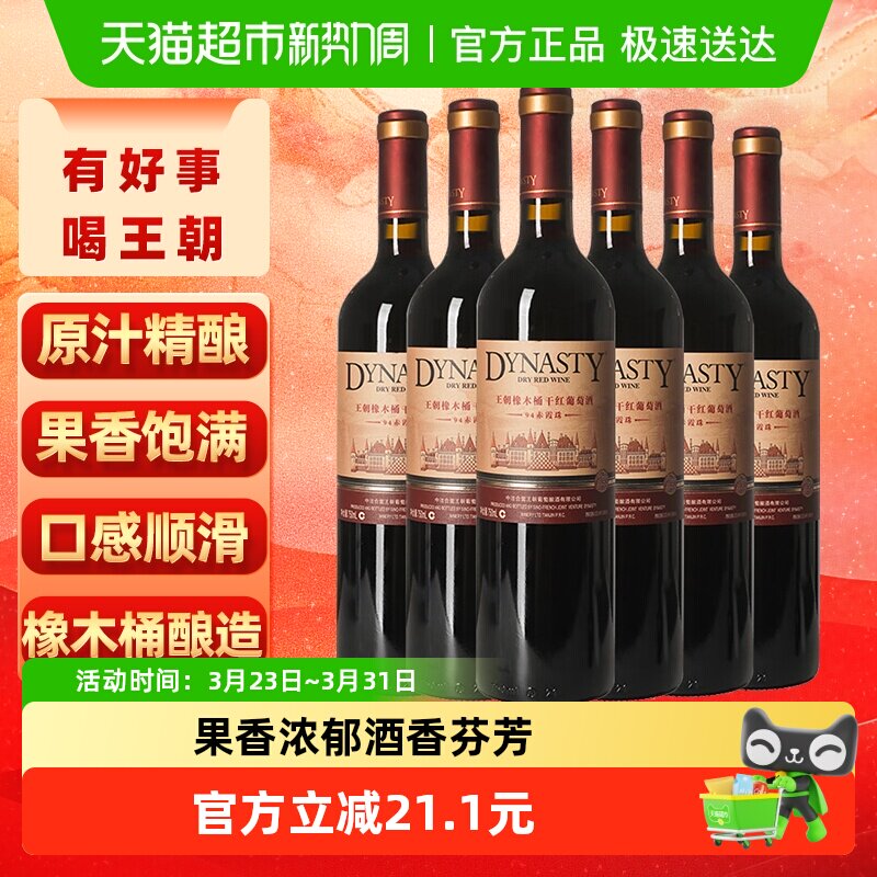 王朝橡木桶94赤霞珠干红葡萄酒整箱750ml*6正品爆款热销热红酒