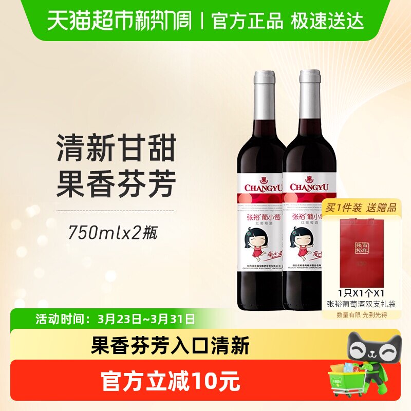 官方正品张裕甜红葡萄酒红酒甜型葡小萄樱甜红热红酒双支女士微醺