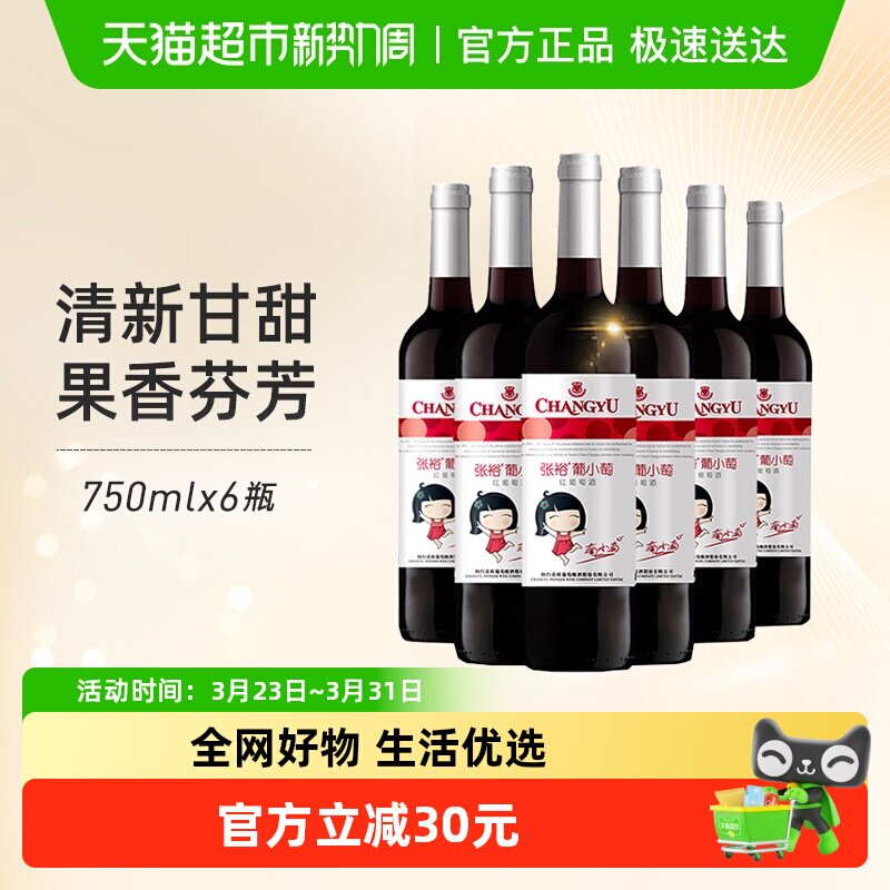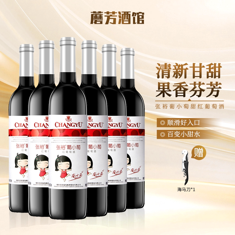 张裕红酒葡小萄甜红葡萄酒750mlx6瓶整箱女士甜酒微醺聚会易入口