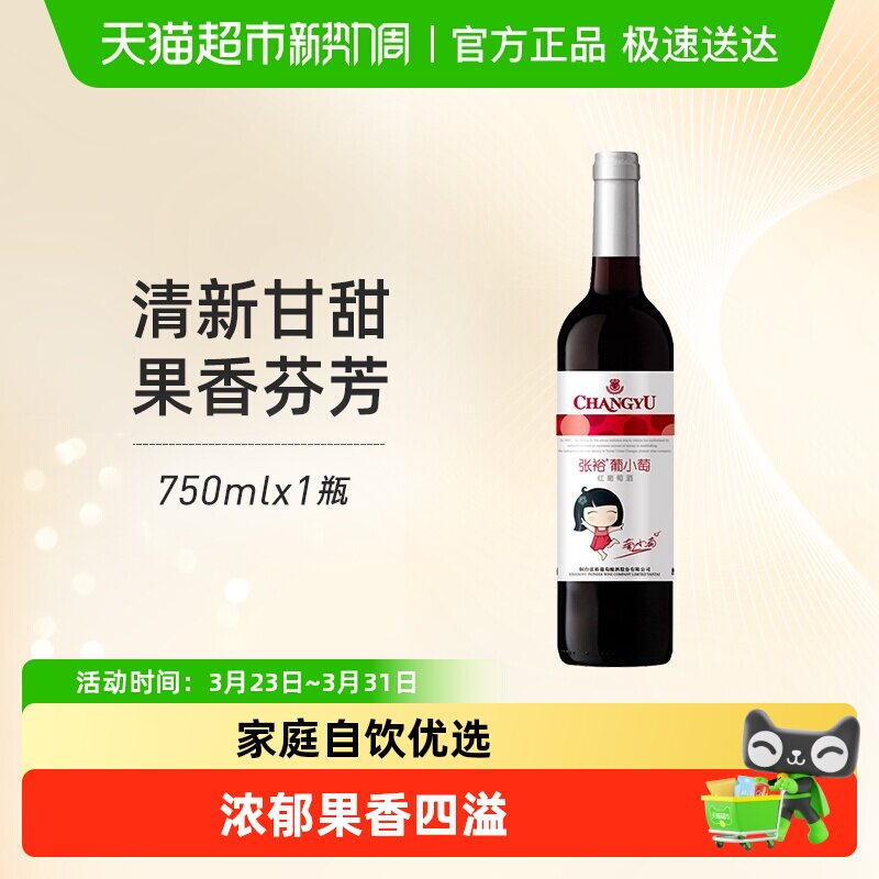 正品张裕甜型葡萄酒红酒葡小萄樱甜红玫瑰红葡萄酒热红酒750ml