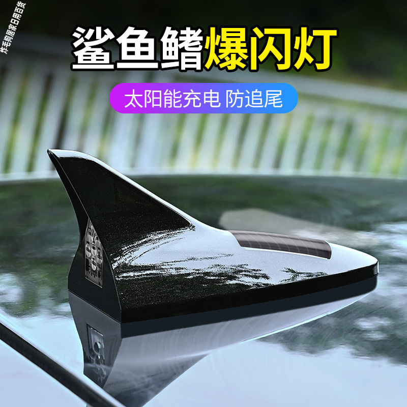 汽车太阳能爆闪灯鲨鱼鳍天线防追尾车顶灯尾翼车载警示灯装饰大全