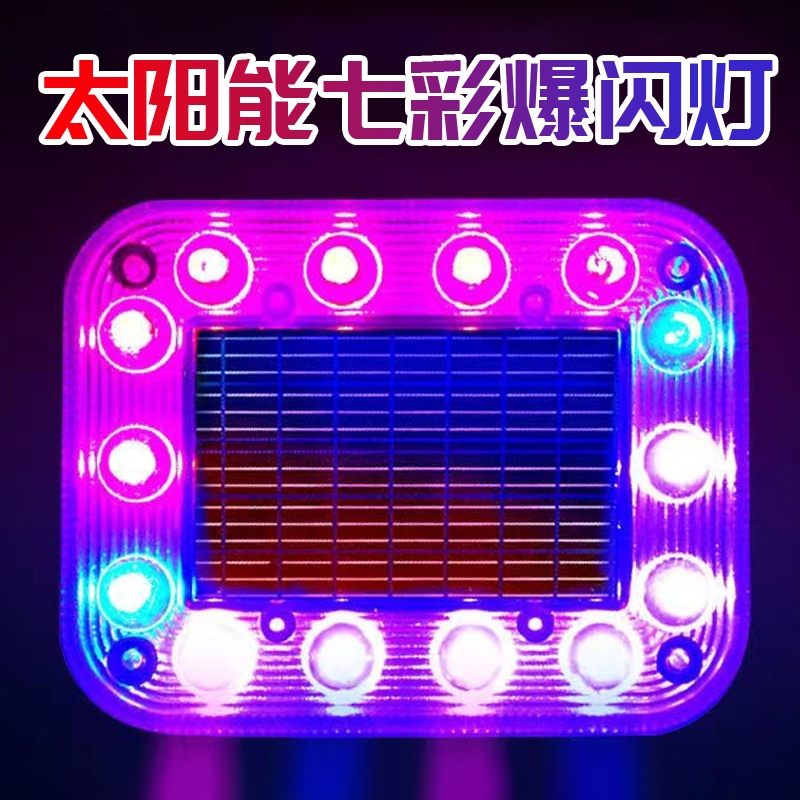 汽车太阳能爆闪灯防追尾灯装饰警示灯七彩游侠LED车外防水流水灯