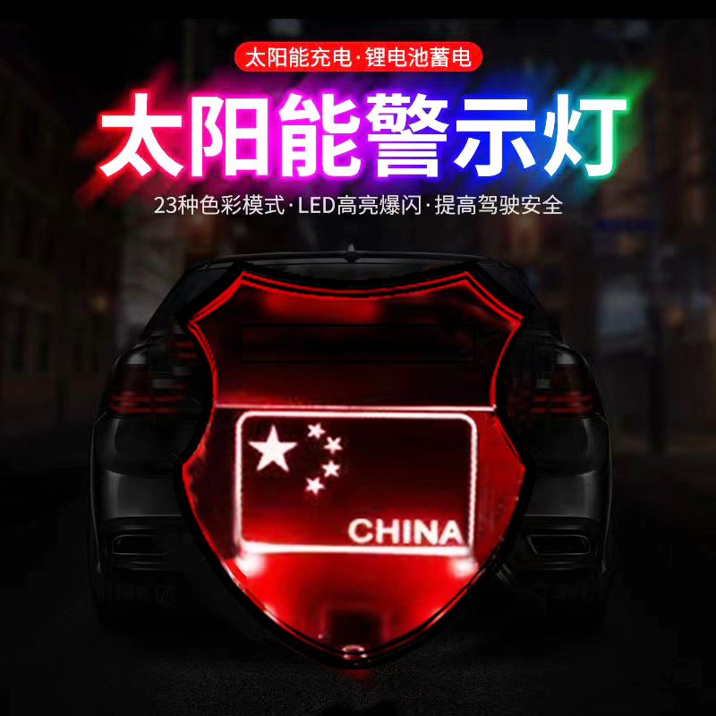 汽车太阳能爆闪灯防追尾灯装饰灯警示灯霹雳游侠LED流水灯 呼吸灯