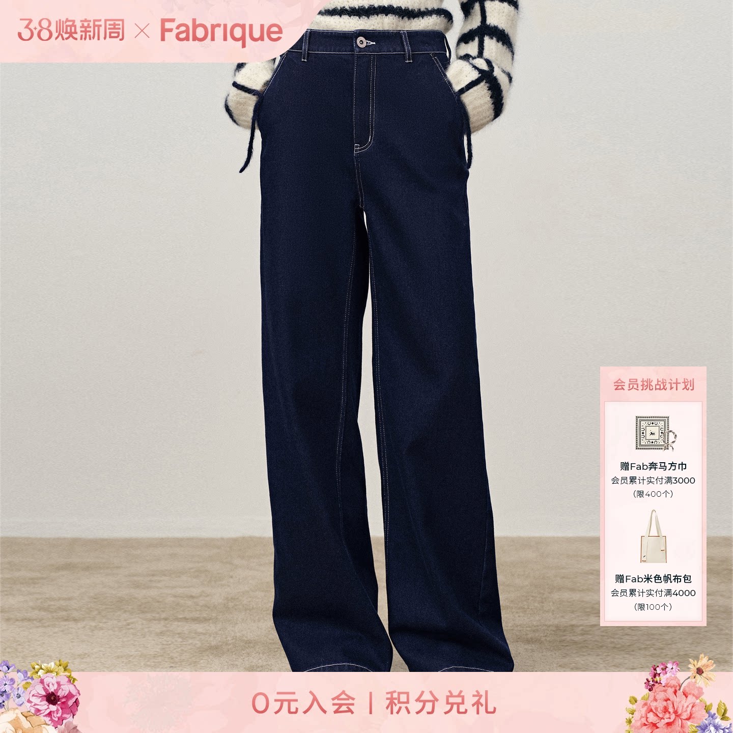 Fabrique【加绒牛仔】复古深蓝羊毛直筒阔腿牛仔裤女冬季