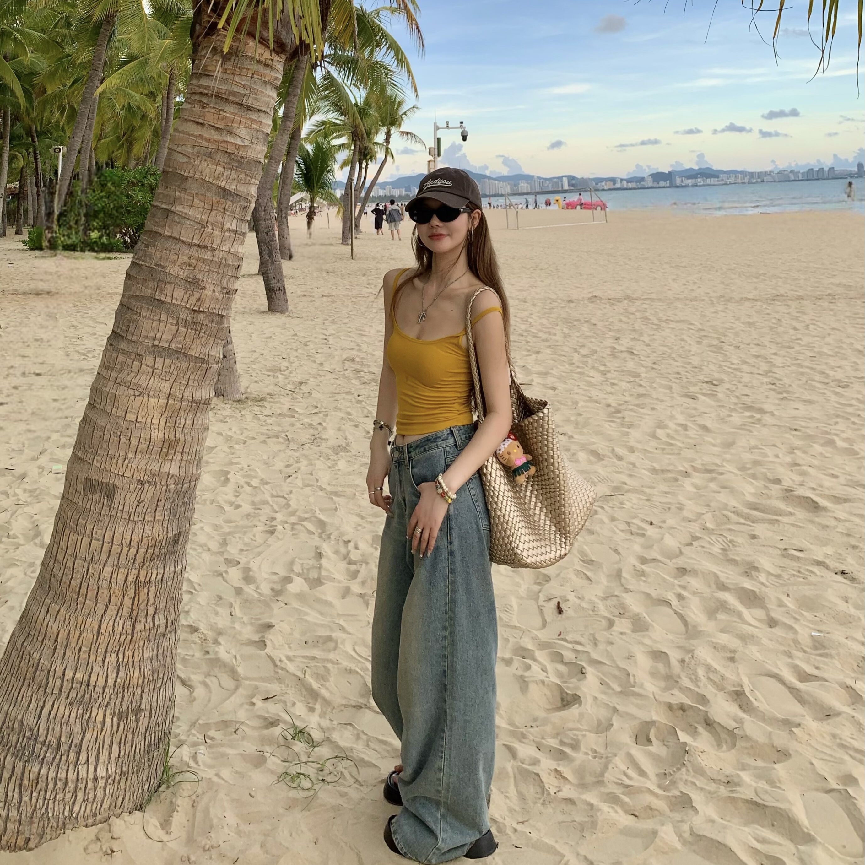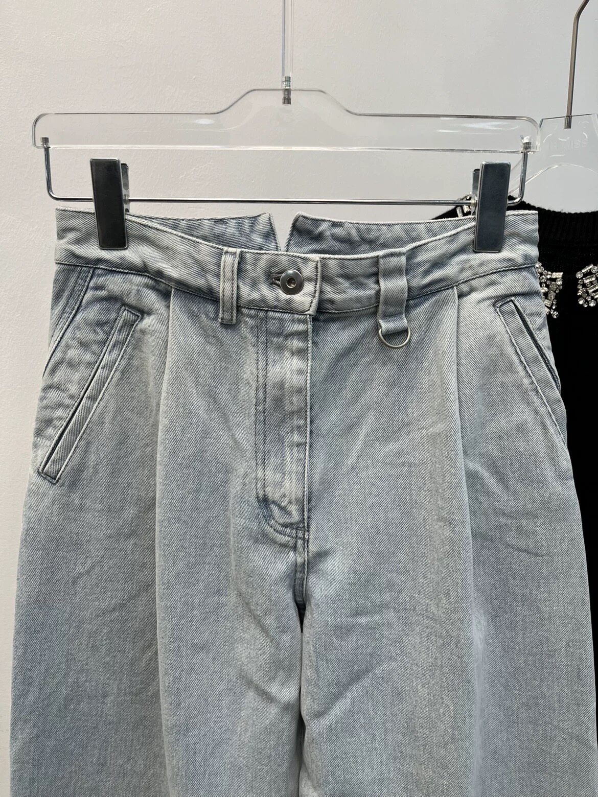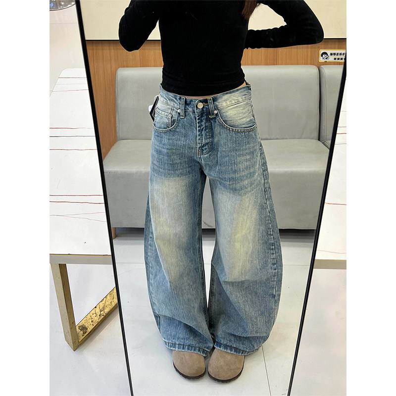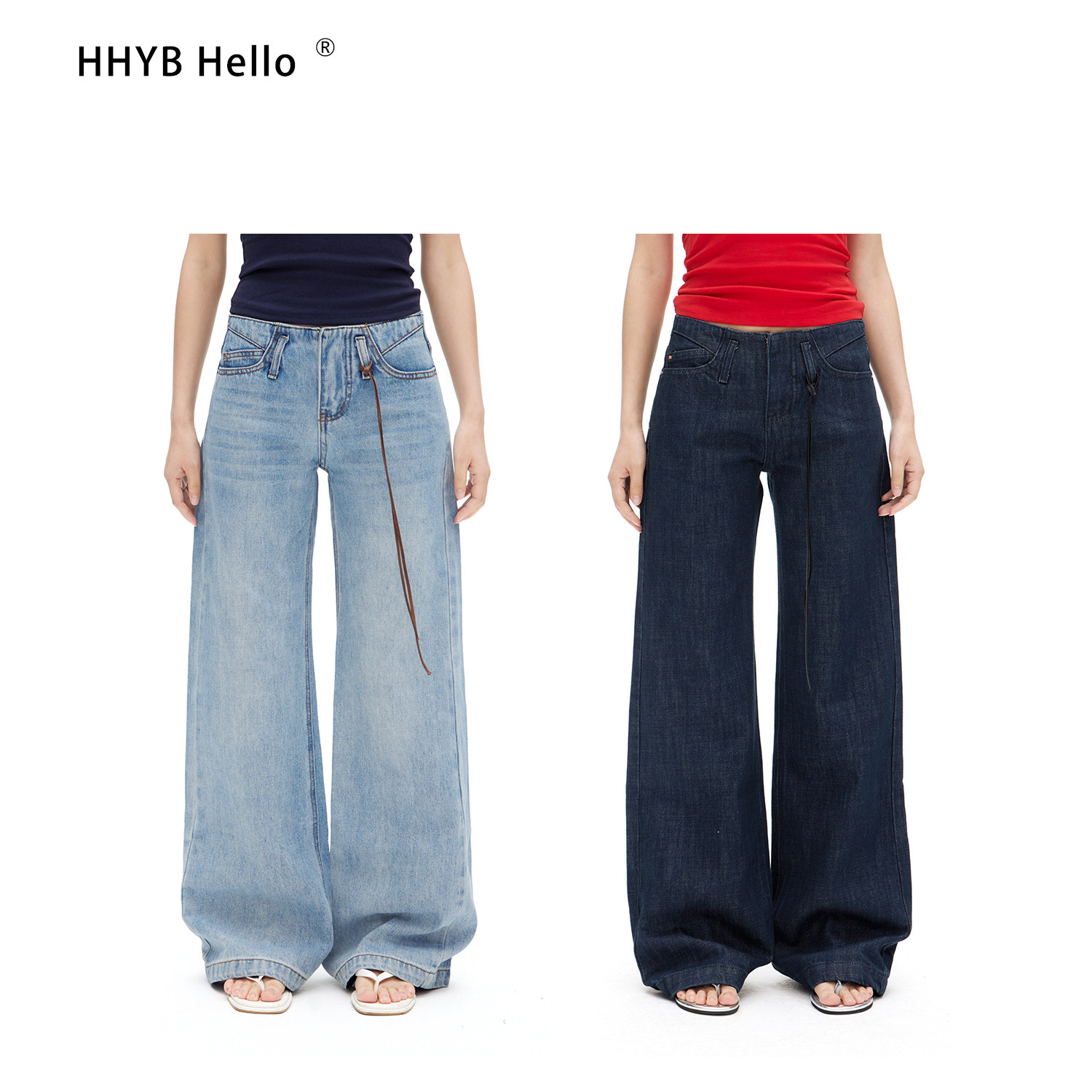 HHYB别来无恙 低腰复古低腰直筒阔腿牛仔裤新款水洗长裤Q244286