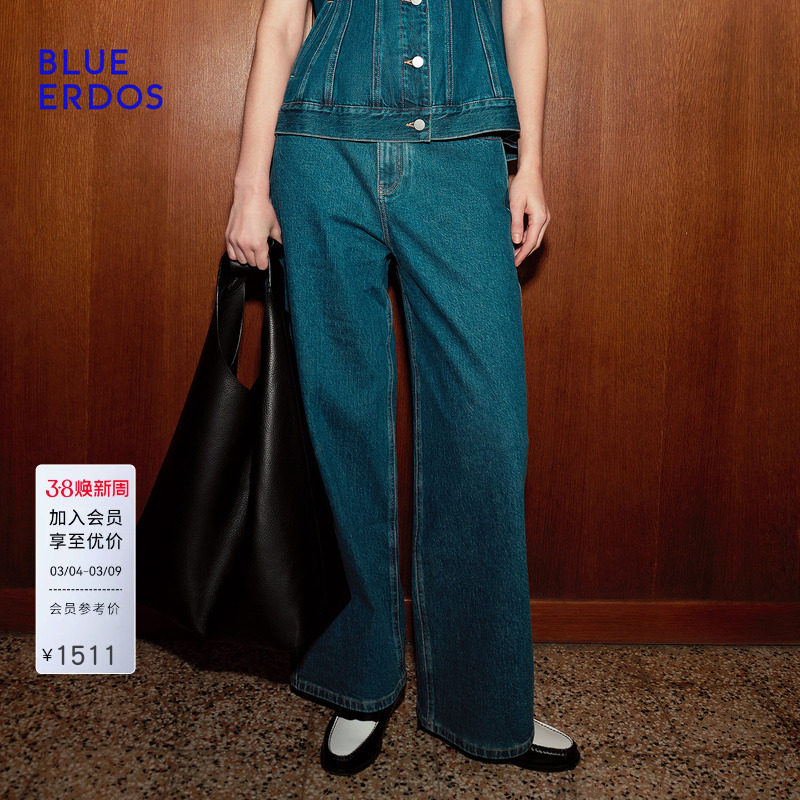 BLUE ERDOS26早春新品休闲百搭水洗直筒阔腿牛仔裤女B2265M006