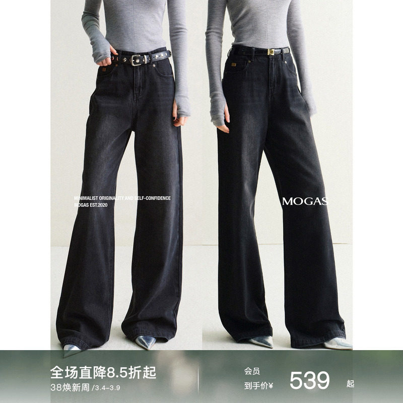 Mogas长青神裤 棉混纺复古水洗丹宁高腰显瘦直筒阔腿牛仔裤四季款