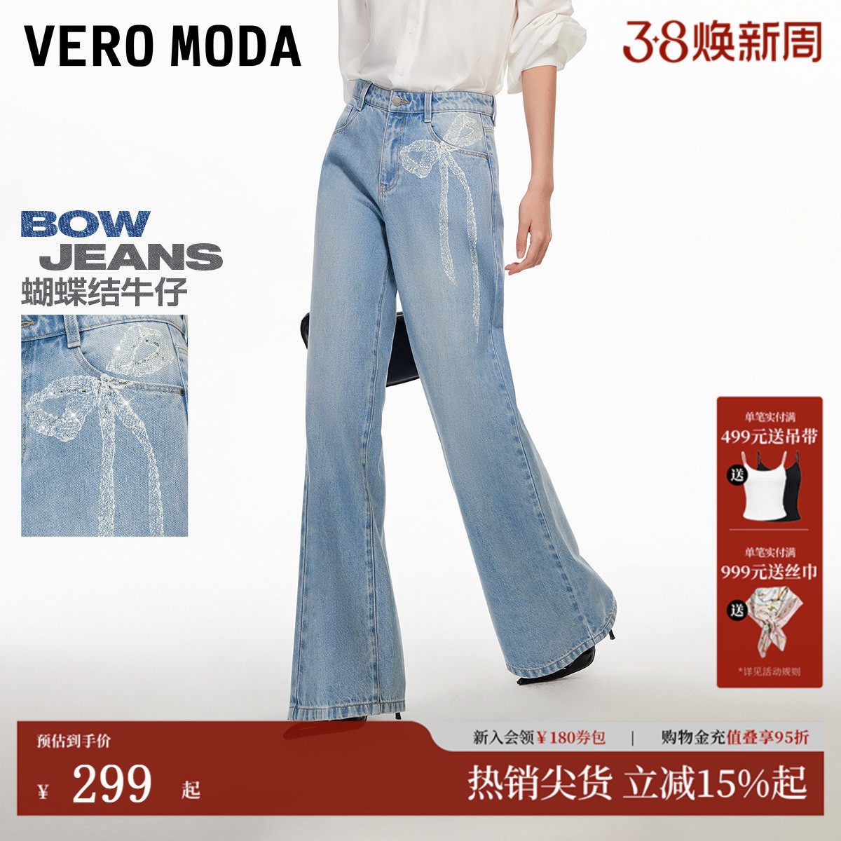 【蝴蝶结】Vero Moda牛仔裤2026春季新款纯棉贴钻直筒裤阔腿裤