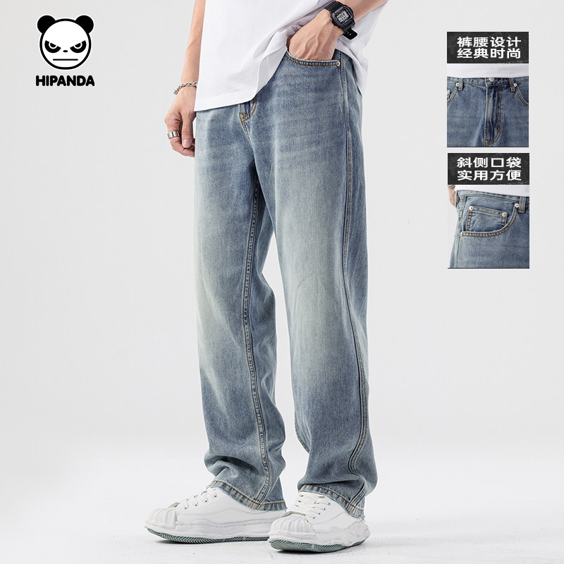 Hipanda你好熊猫美式高街直筒阔腿牛仔裤2025秋新款潮男百搭长裤