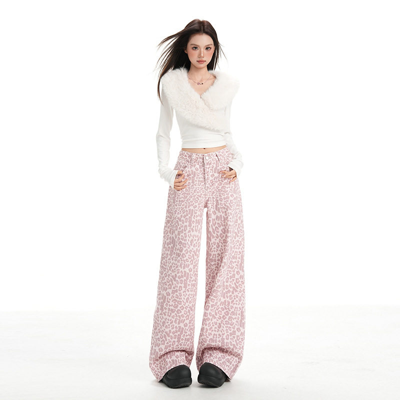 F PROJECT【奶油单宁】垂感拖地印花长裤遮肉显瘦直筒阔腿牛仔裤