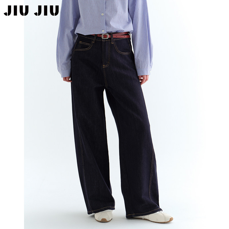 Uni Cozy【超模牛仔 遮胯显瘦】摩登复古高腰直筒阔腿牛仔裤女003