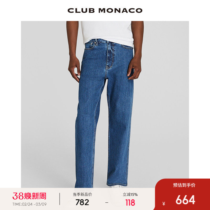 CLUB MONACO男装水洗美式复古休闲潮流直筒阔腿牛仔裤