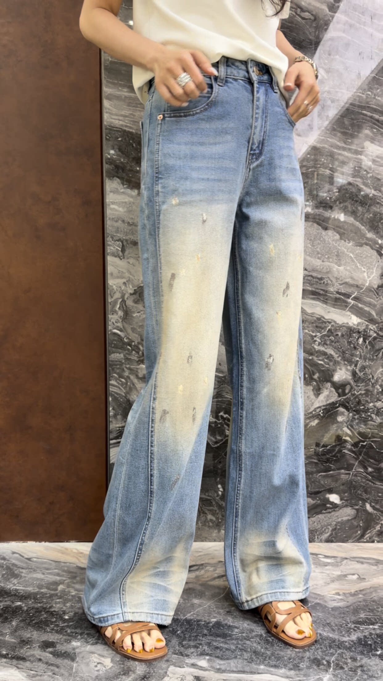 H春上7号 理想裤型 四面弹 法柜含莱卡高腰直筒阔腿牛仔裤女03L7