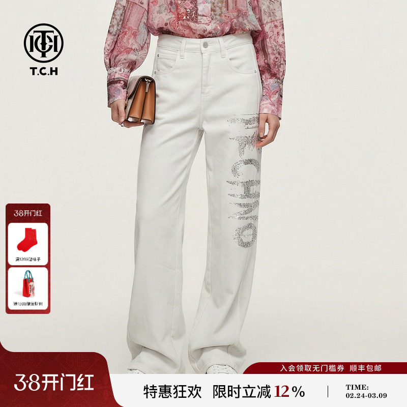 TCH潮牌烫钻垂感百搭直筒阔腿牛仔裤女2026春夏新款T78A20E1150