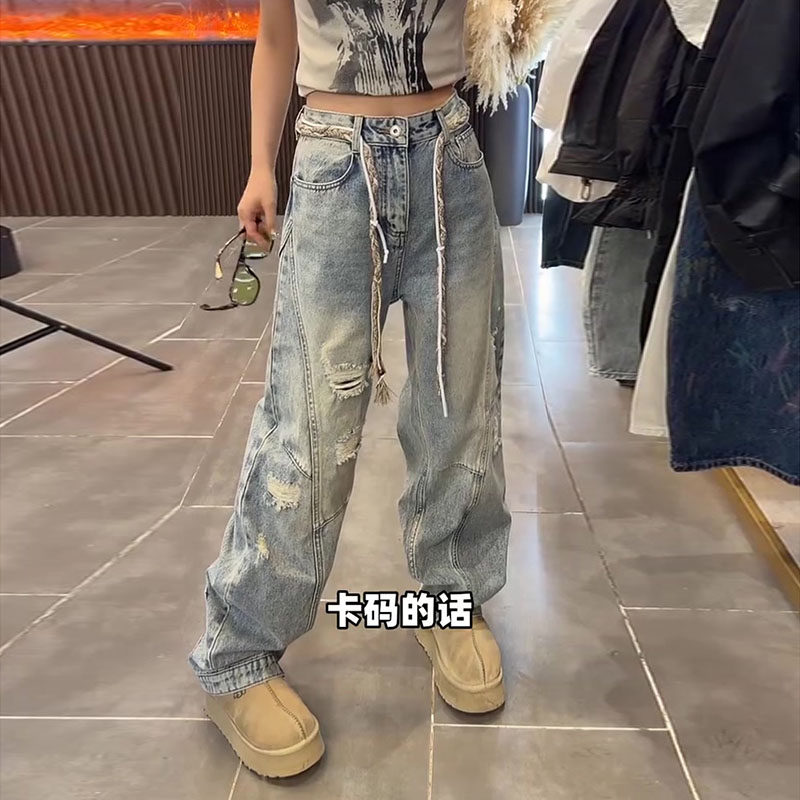 mostwanted解构腰带不掉色直筒阔腿牛仔裤2026春季新款女款裤子