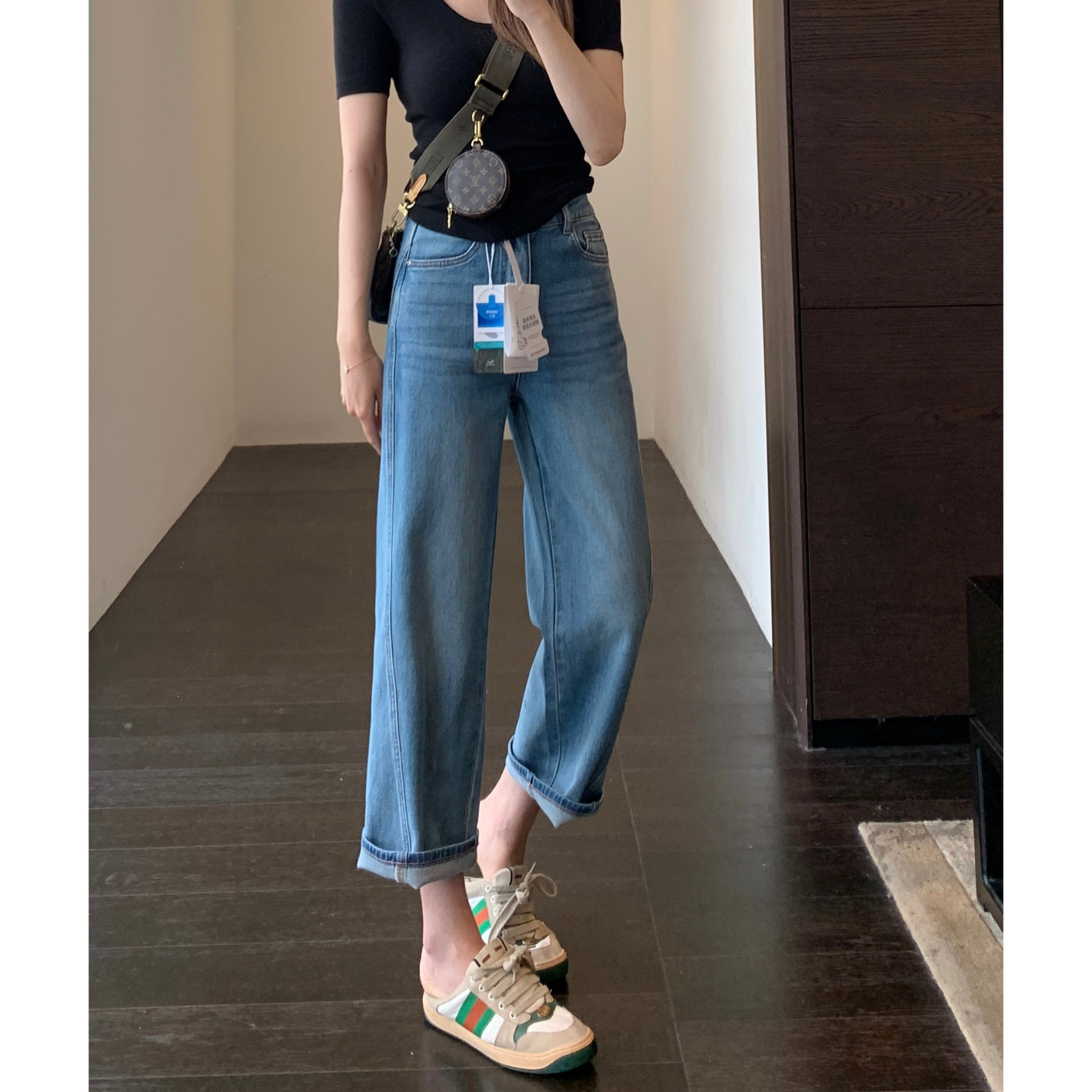 AMR UU◆美式经典~高腰显瘦宽松9分直筒阔腿牛仔裤女2026春夏新