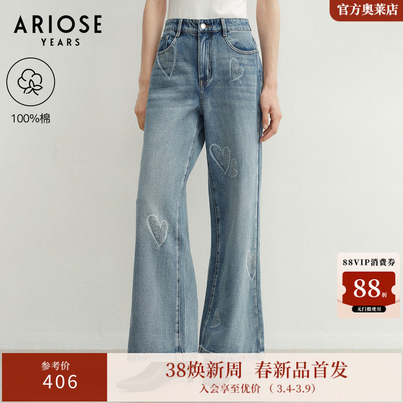 ariosea艾诺丝单官方旗舰店2026年春新款宽松直筒阔腿牛仔裤2869