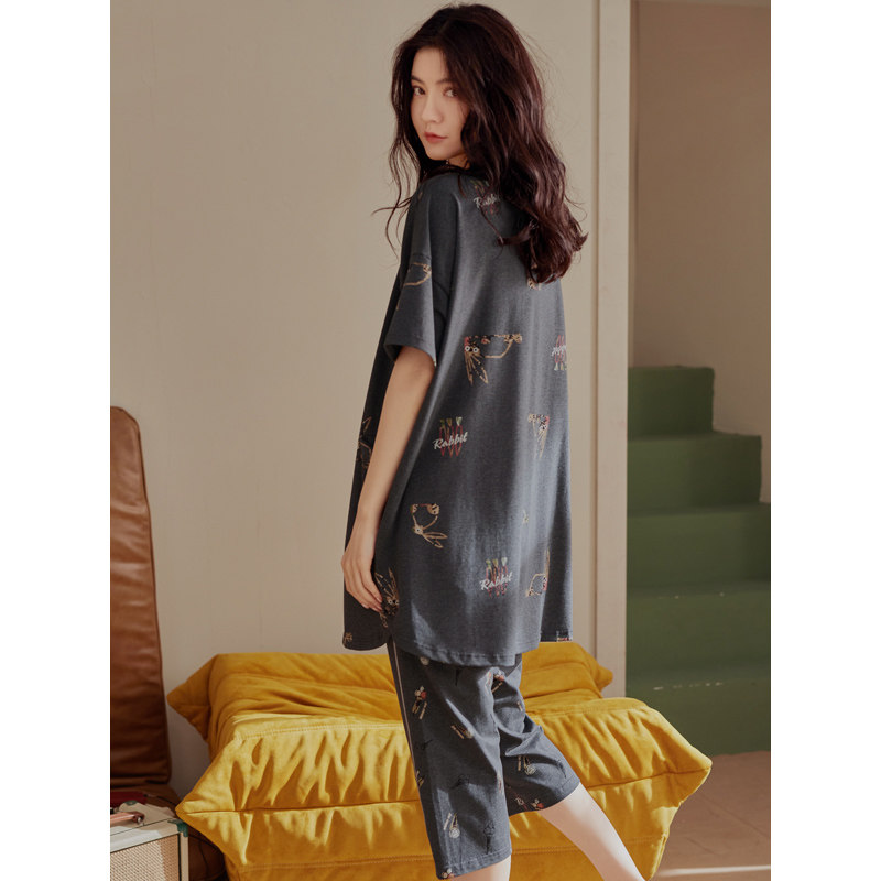 睡衣女夏季短袖纯棉七分裤夏天女全棉可外穿宽松大码居家服女套装
