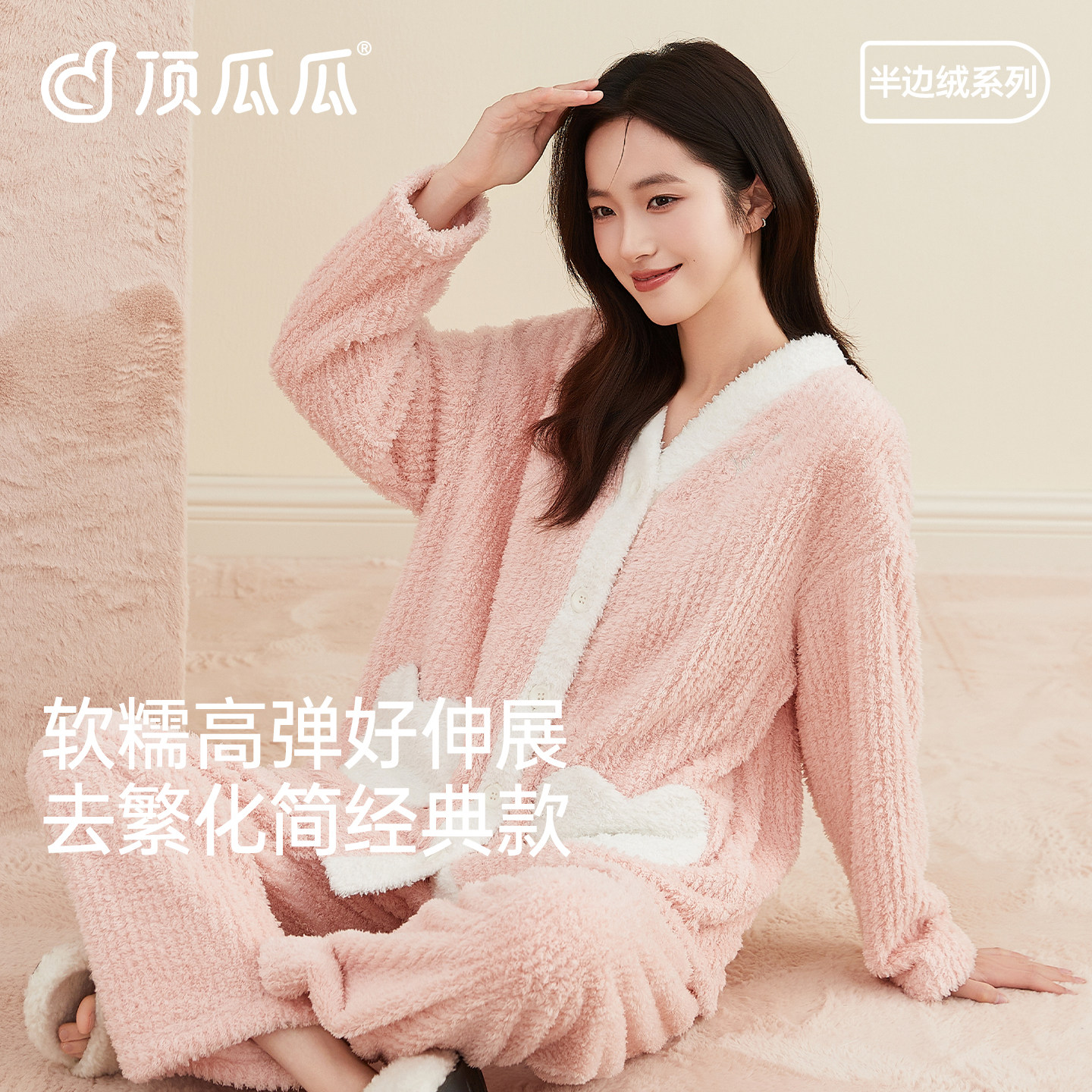 - 冬季加厚珊瑚绒夹棉睡衣女士
