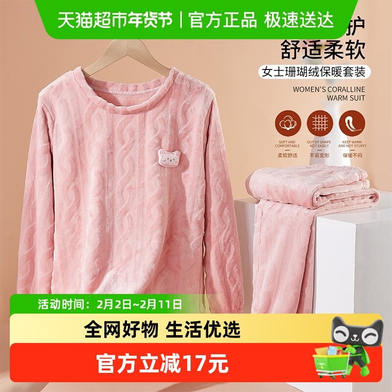 红豆居家服女士珊瑚绒睡衣加厚秋冬款抗静电可外穿桂花绒少女套装