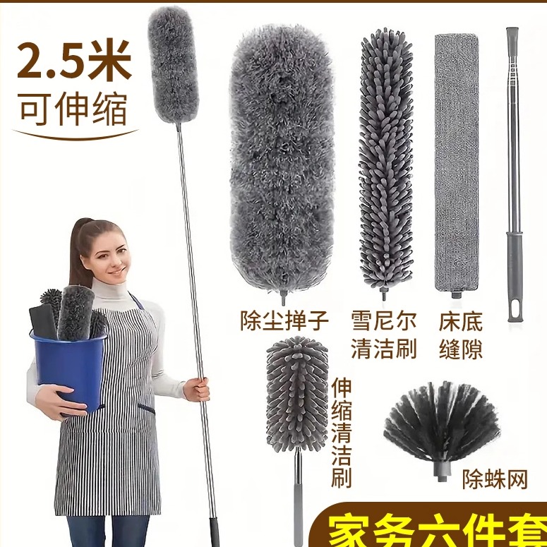 鸡毛掸子除尘扫灰家用可伸缩加长天花板蜘蛛网清洁神器静电除尘掸