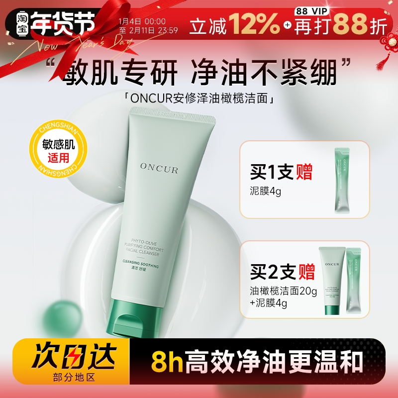 程十安安修泽洗面奶油橄榄氨基酸洁面乳温和清洁敏感肌女男士专用