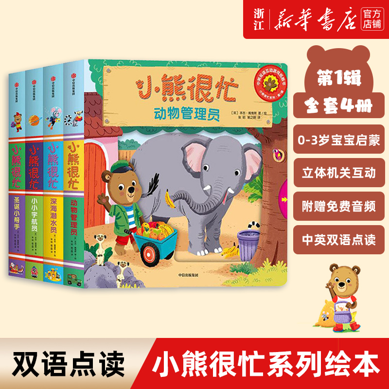 0-3岁 小熊很忙系列点读版第一辑(全套4册) 早教启蒙绘本婴幼儿益智机关书一岁半儿童推拉书婴儿认知翻翻书幼儿撕不烂书籍