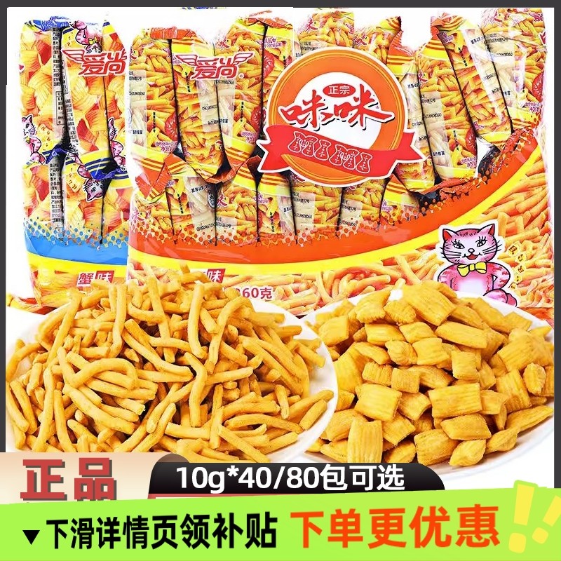 爱尚咪咪虾条蟹味粒小包装办公室怀旧经典休闲零食品童年好吃夜宵