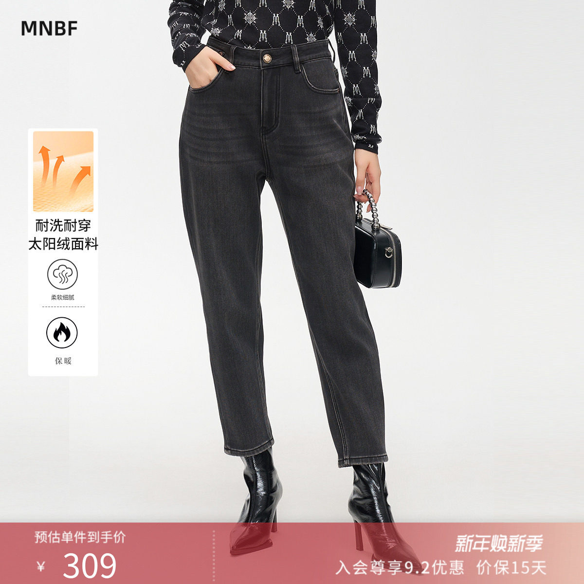 IEF/爱依服九分裤2025冬季新款韩版通勤气质加绒保暖牛仔哈伦裤