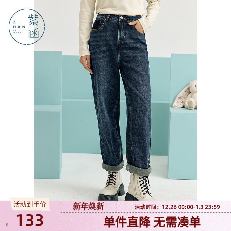 IEF/爱依服裤子2025冬季新款韩版时尚通勤气质加绒保暖牛仔哈伦裤