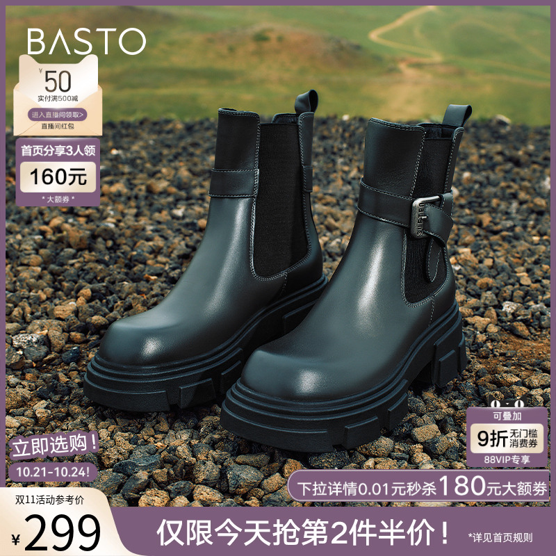 百思图冬商场同款切尔西靴烟筒靴加绒牛皮靴女中筒靴TQD61DZ3