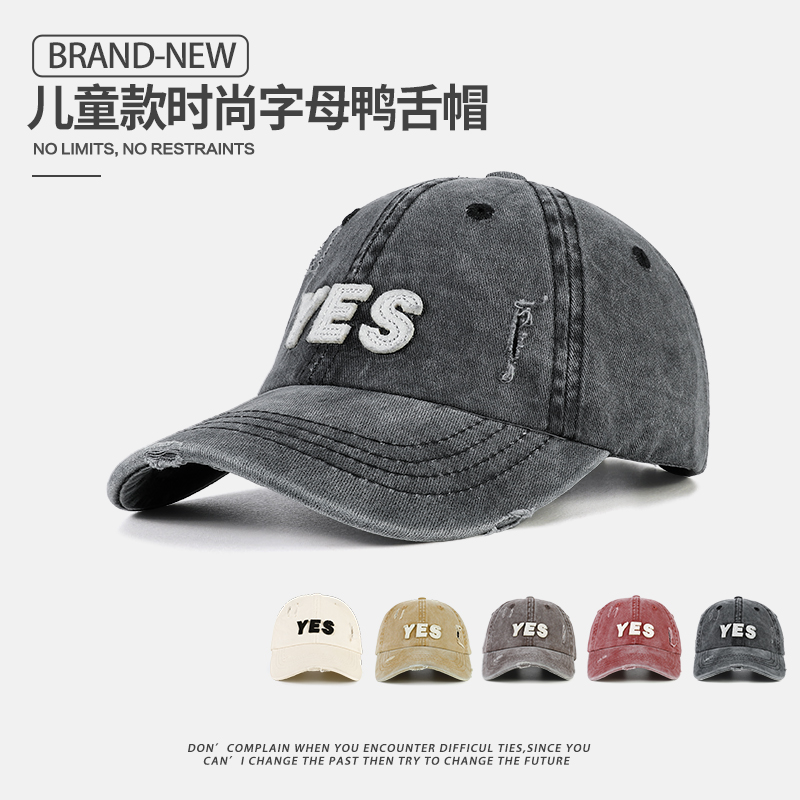 复古水洗儿童棒球帽个性破洞软顶男童宝宝鸭舌帽女孩逛街拍照帽子