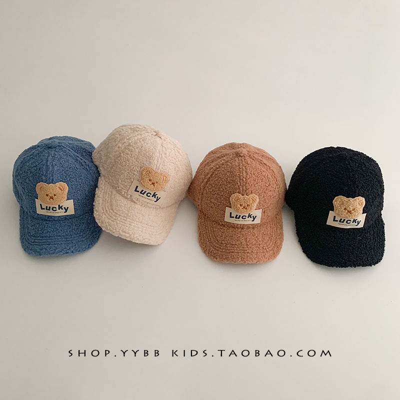 儿童棒球帽男童秋冬季宝宝鸭舌帽女童可爱小熊保暖韩版羊羔绒帽子
